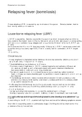 L B R F is caused by Borrelia recurrentis. I t o ccurs in ep id em ic waves when co nd itio ns
